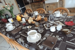 Le petit déjeuner est composé d’un assortiment de produits maison, brioches, pains, yaourts, confitures, ainsi que de produits locaux.